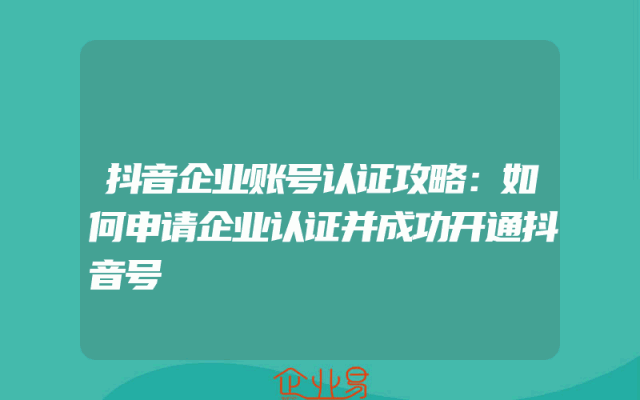 - 抖音企业账号认证攻略:如何申请企业认证并成功开通抖音号