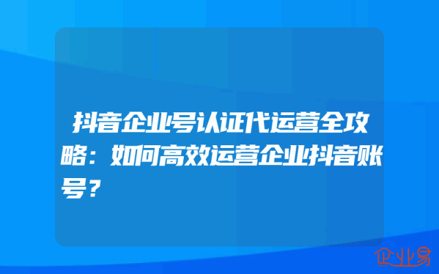 - 抖音企业号认证代运营全攻略:如何高效运营企业抖音账号?