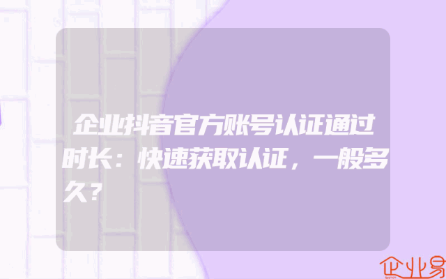 - 企业抖音官方账号认证通过时长:快速获取认证,一般多久?