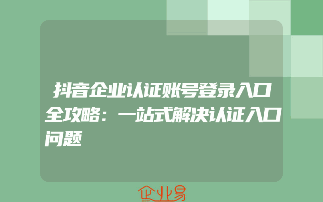 - 抖音企业认证账号登录入口全攻略:一站式解决认证入口问题
