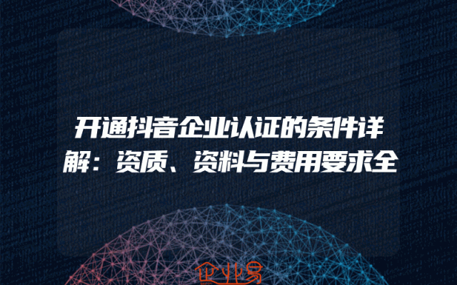 - 开通抖音企业认证的条件详解:资质、资料与费用要求全