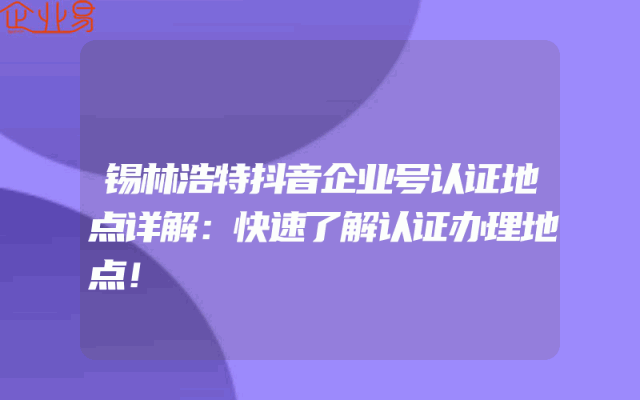 - 锡林浩特抖音企业号认证地点详解:快速了解认证办理地点!