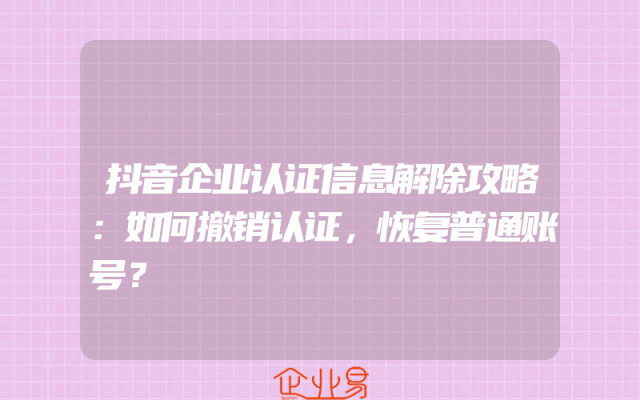 - 抖音企业认证信息解除攻略:如何撤销认证,恢复普通账号?