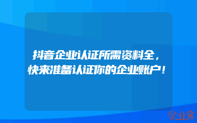 - 抖音企业认证所需资料全,快来准备认证你的企业账户!