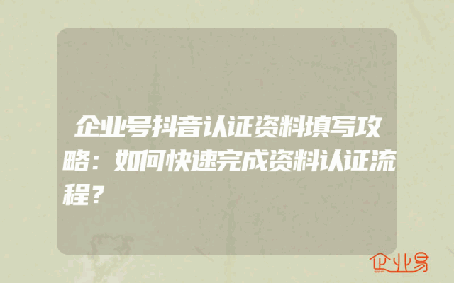 - 企业号抖音认证资料填写攻略:如何快速完成资料认证流程?