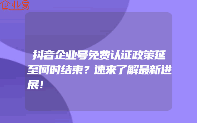 - 抖音企业号免费认证政策延至何时结束?速来了解最新进展!