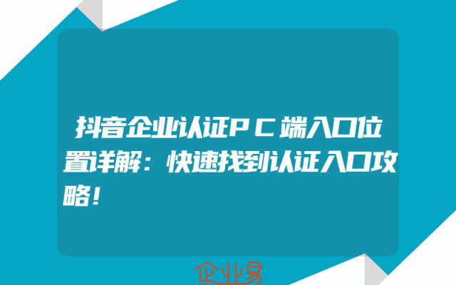 - 抖音企业认证PC端入口位置详解:快速找到认证入口攻略!