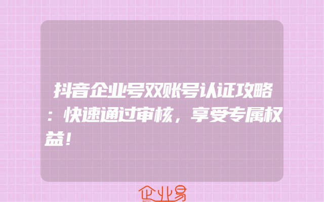 - 抖音企业号双账号认证攻略:快速通过审核,享受专属权益!