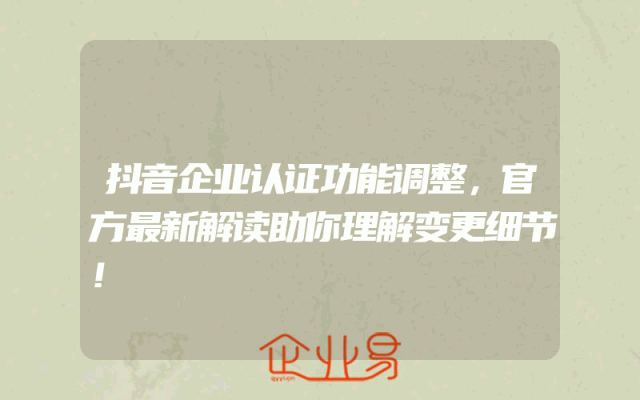 - 抖音企业认证功能调整,官方最新解读助你理解变更细节!