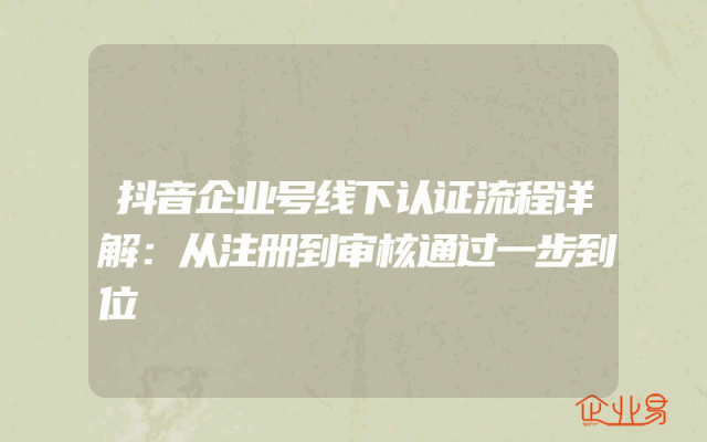 - 抖音企业号线下认证流程详解:从注册到审核通过一步到位