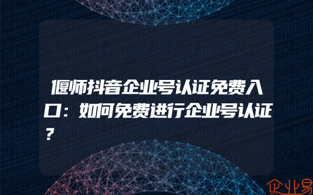 - 偃师抖音企业号认证免费入口:如何免费进行企业号认证?