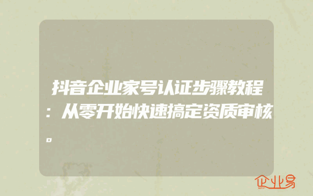 - 抖音企业家号认证步骤教程:从零开始快速搞定资质审核。
