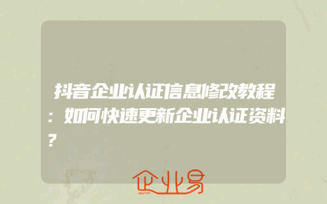 - 抖音企业认证信息修改教程:如何快速更新企业认证资料?