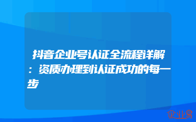 - 抖音企业号认证全流程详解:资质办理到认证成功的每一步