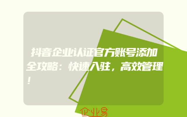 - 抖音企业认证官方账号添加全攻略:快速入驻,高效管理!