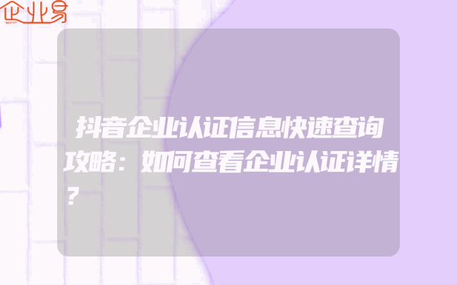 - 抖音企业认证信息快速查询攻略:如何查看企业认证详情?
