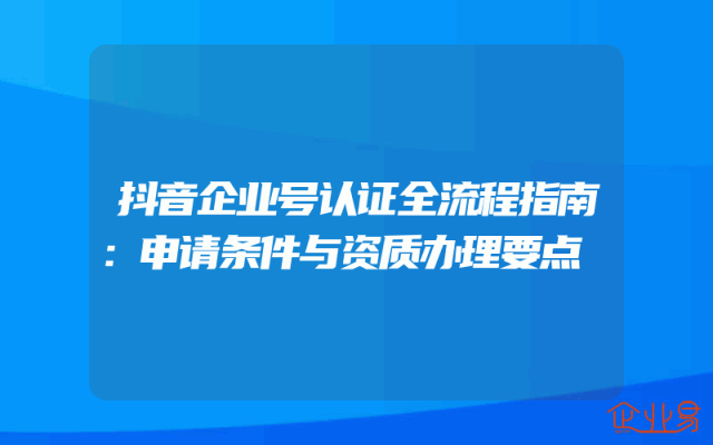- 抖音企业号认证全流程指南:申请条件与资质办理要点
