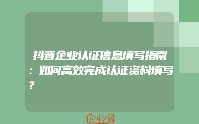 - 抖音企业认证信息填写指南:如何高效完成认证资料填写?一、了解抖音企业认证的重要性和前提在当今数字化时代,抖音作为一款领先的短视频社交平台,吸引了大量用户的关注。企业认证是提升品牌在抖音平台影响力和信誉度的关键步骤。完成企业认证可以为企业带来