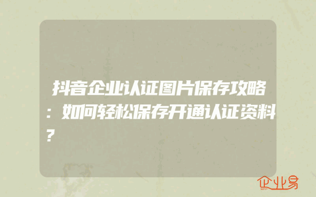 - 抖音企业认证图片保存攻略:如何轻松保存开通认证资料?