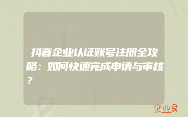 - 抖音企业认证账号注册全攻略:如何快速完成申请与审核了解抖音企业认证的重要性在数字化时代,抖音已经成为众多企业开展品牌营销的重要平台。拥有一个经过认证的企业账号,不仅能提升品牌公信力,还能享受到一系