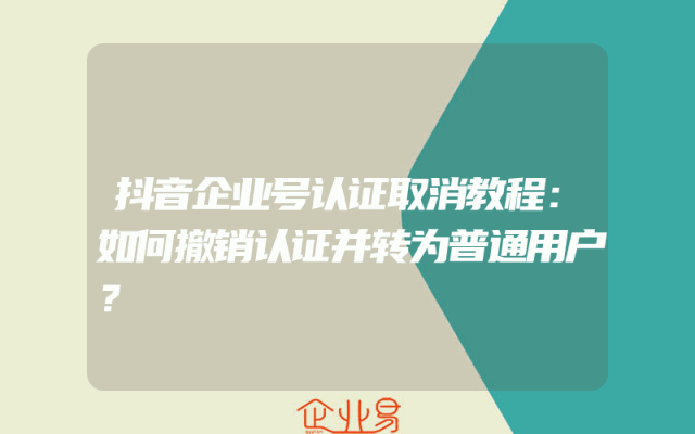 - 抖音企业号认证取消教程:如何撤销认证并转为普通用户?