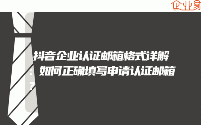- 抖音企业认证邮箱格式详解:如何正确填写申请认证邮箱一、了解邮箱格式的重要性在进行抖音企业认证时,正确填写申请认证邮箱是至关重要的。这不仅关系到认证的顺利进行,还涉及到企业信息安全和后期管理的便利性。因此,企业应充分了解邮箱格式要求,以确保信
