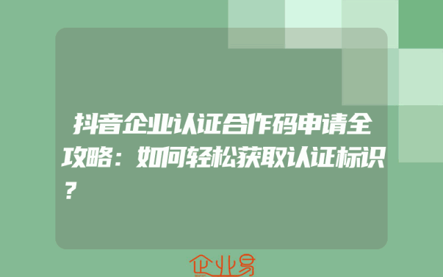- 抖音企业认证合作码申请全攻略:如何轻松获取认证标识?