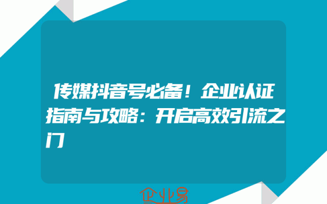 - 传媒抖音号必备!企业认证指南与攻略:开启高效引流之门