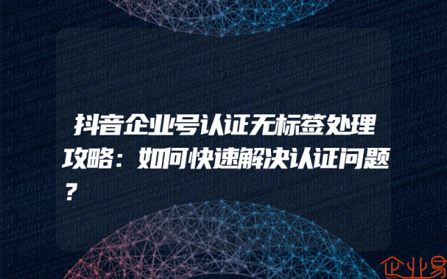 - 抖音企业号认证无标签处理攻略:如何快速解决认证问题?