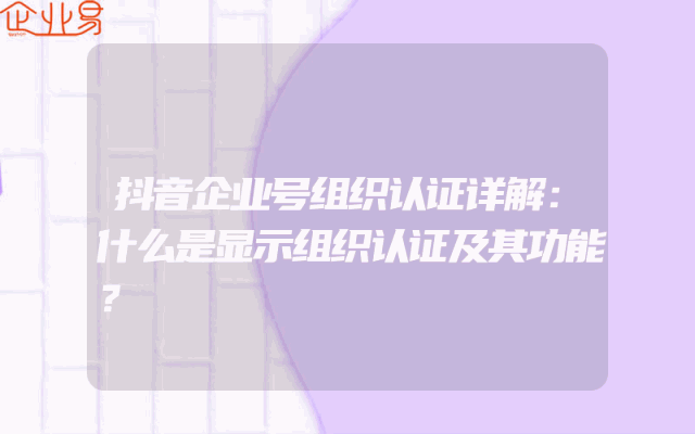- 抖音企业号组织认证详解:什么是显示组织认证及其功能?