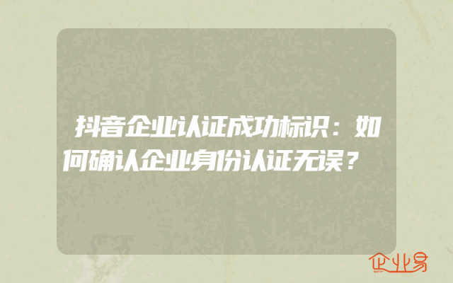 - 抖音企业认证成功标识:如何确认企业身份认证无误?