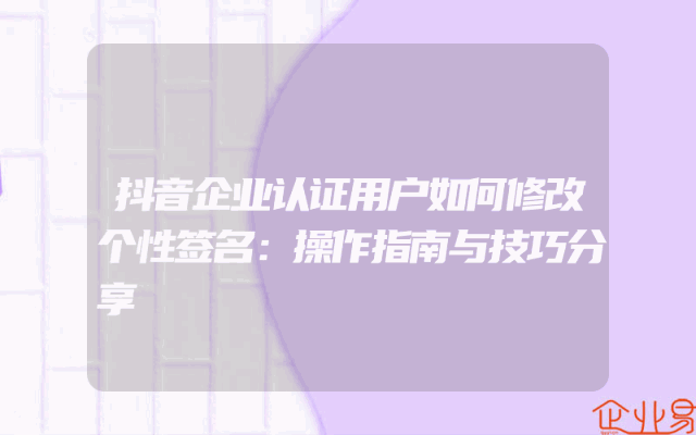 - 抖音企业认证用户如何修改个性签名:操作指南与技巧分享