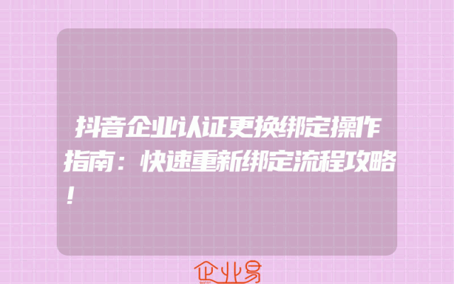 - 抖音企业认证更换绑定操作指南:快速重新绑定流程攻略!