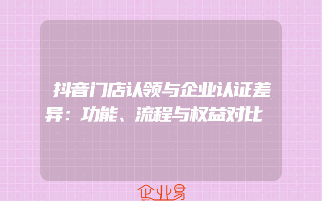 - 抖音门店认领与企业认证差异:功能、流程与权益对比