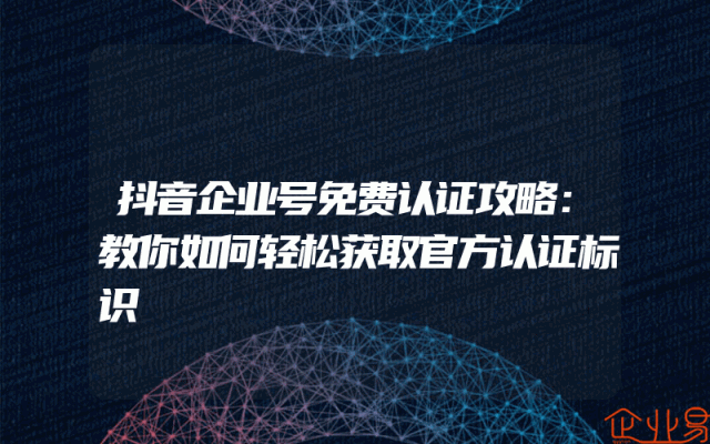 - 抖音企业号免费认证攻略:教你如何轻松获取官方认证标识抖音企业号的官方认证标识不仅是提升品牌形象的重要途径,也能为企业在抖音平台带来一系列的权益与机会。本文将为你详细解析抖音企业号的免费认证攻略,助你