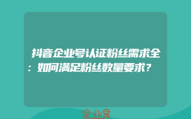 - 抖音企业号认证粉丝需求全:如何满足粉丝数量要求?