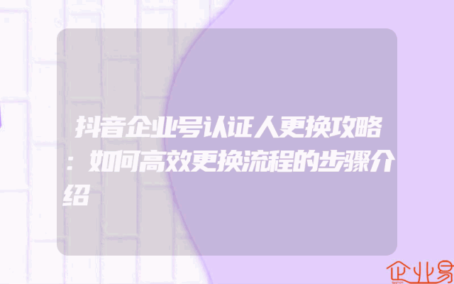 - 抖音企业认证更换公司流程详解:如何重新进行认证操作?