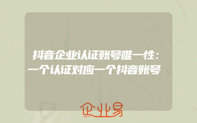 - 抖音企业认证账号唯一性:一个认证对应一个抖音账号