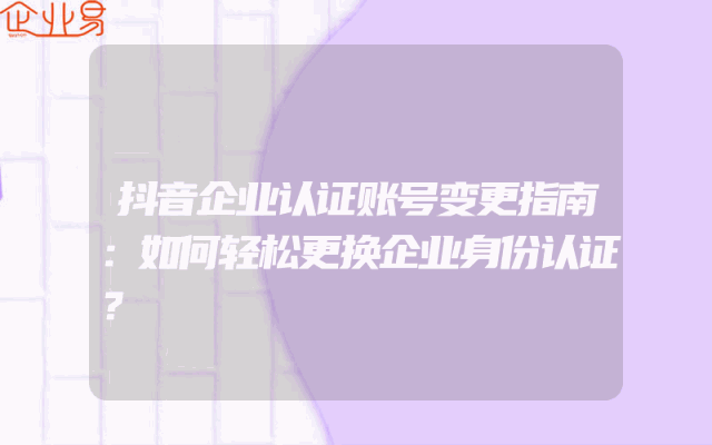 - 抖音企业认证账号变更指南:如何轻松更换企业身份认证?