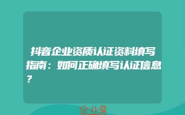 - 抖音企业资质认证资料填写指南:如何正确填写认证信息?