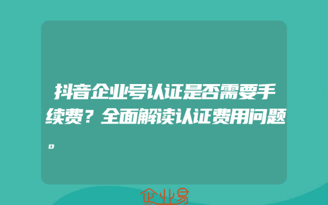 - 抖音企业号认证是否需要手续费?全面解读认证费用问题。