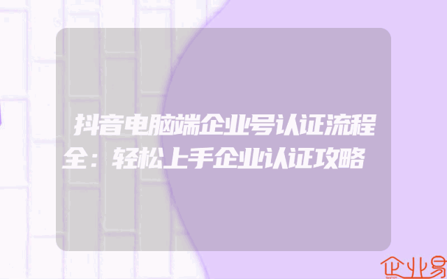 - 抖音电脑端企业号认证流程全:轻松上手企业认证攻略