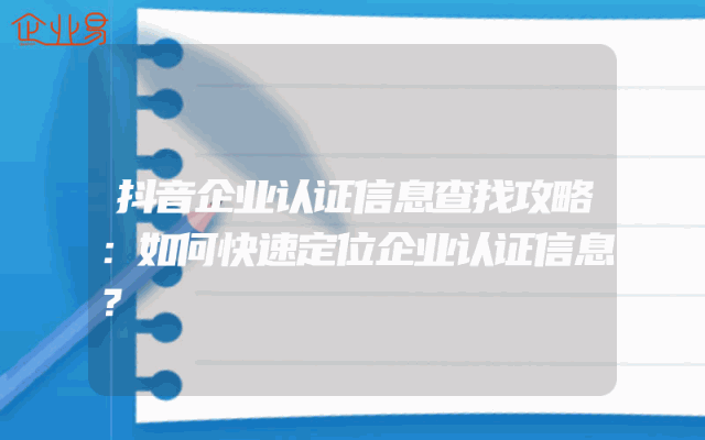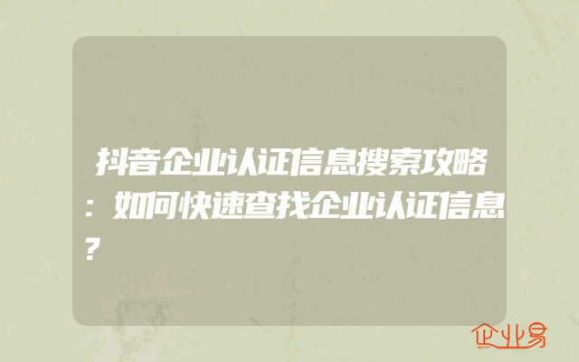 - 抖音企业认证信息搜索攻略:如何快速查找企业认证信息?