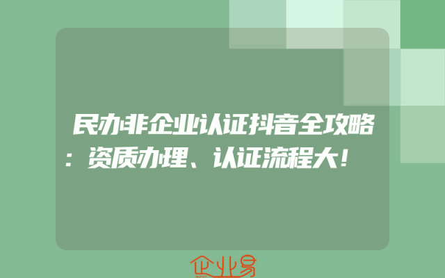- 民办非企业认证抖音全攻略:资质办理、认证流程大!