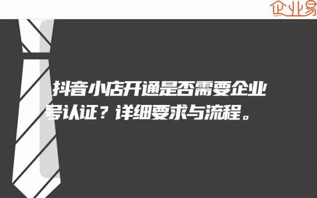 - 抖音小店开通是否需要企业号认证?详细要求与流程。