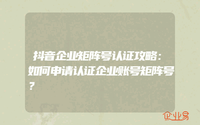 - 抖音企业矩阵号认证攻略:如何申请认证企业账号矩阵号?