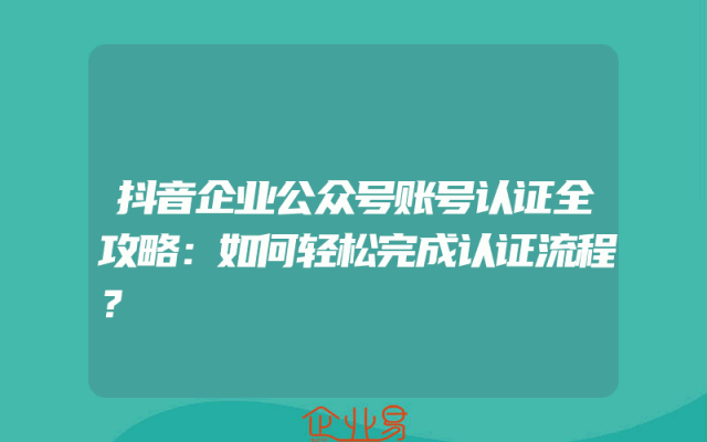 - 抖音企业公众号账号认证全攻略:如何轻松完成认证流程?