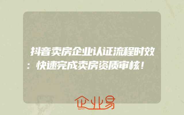- 抖音卖房企业认证流程时效:快速完成卖房资质审核!