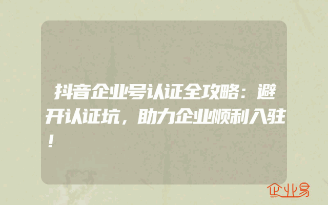 - 抖音企业号认证全攻略:避开认证坑,助力企业顺利入驻!