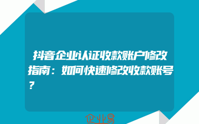 - 抖音企业认证收款账户修改指南:如何快速修改收款账号?